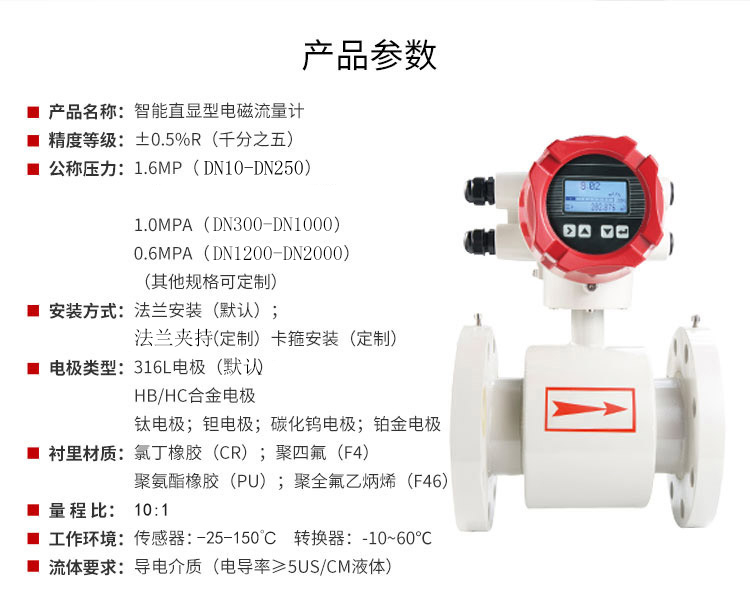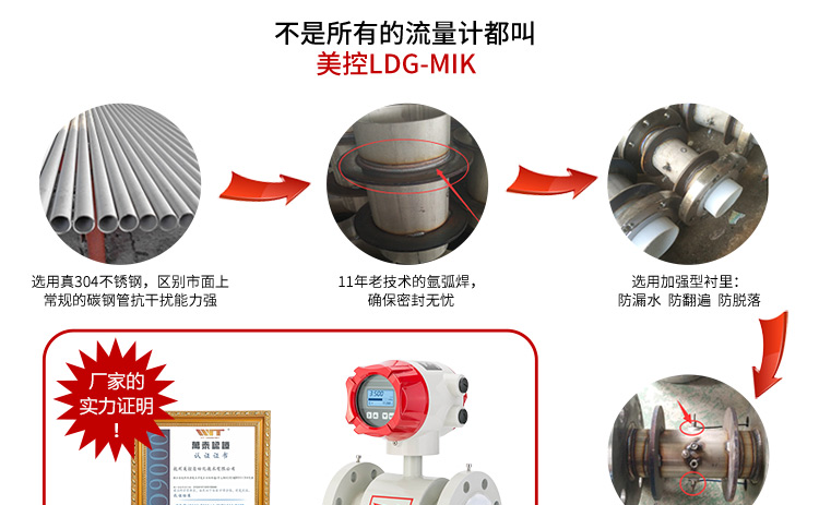 LDG-MIK升级款电磁流量计是根据法拉第电磁感应定律进行流量测试的流量计。电磁流量计的优点是压损极小,可测流量范围大。最大流量与最小流量的比值一般为10:1以上,适用的工业管径范围宽,最大可达3m,输出信号和被测流量呈线性,精确度较高,可测量电导率≥5μs/cm的酸、碱盐溶液、水、污水、腐蚀性液体以及泥浆、矿浆、纸浆等流体流量。