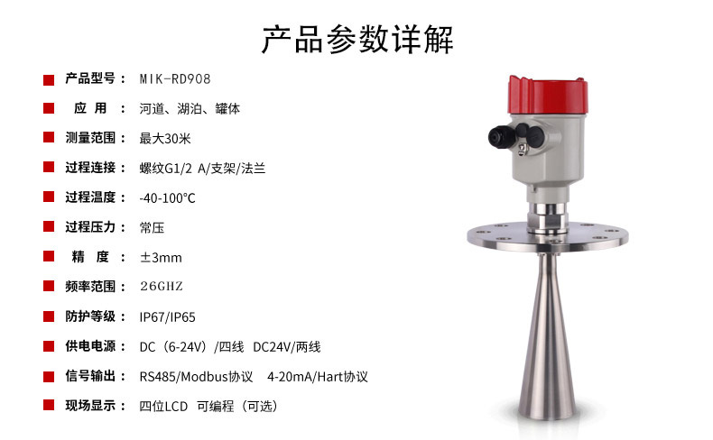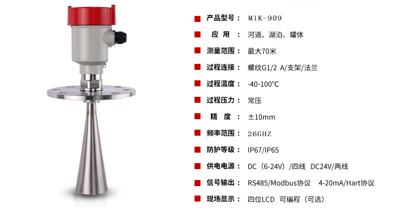 通用款 MIK-RD908/909 雷达液位计/物位计 河道/水库产品优势