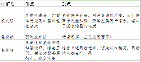 根据电解质不同,可以分为:铵盐镀锌、钾盐镀锌和钠盐镀锌,具体见下表: