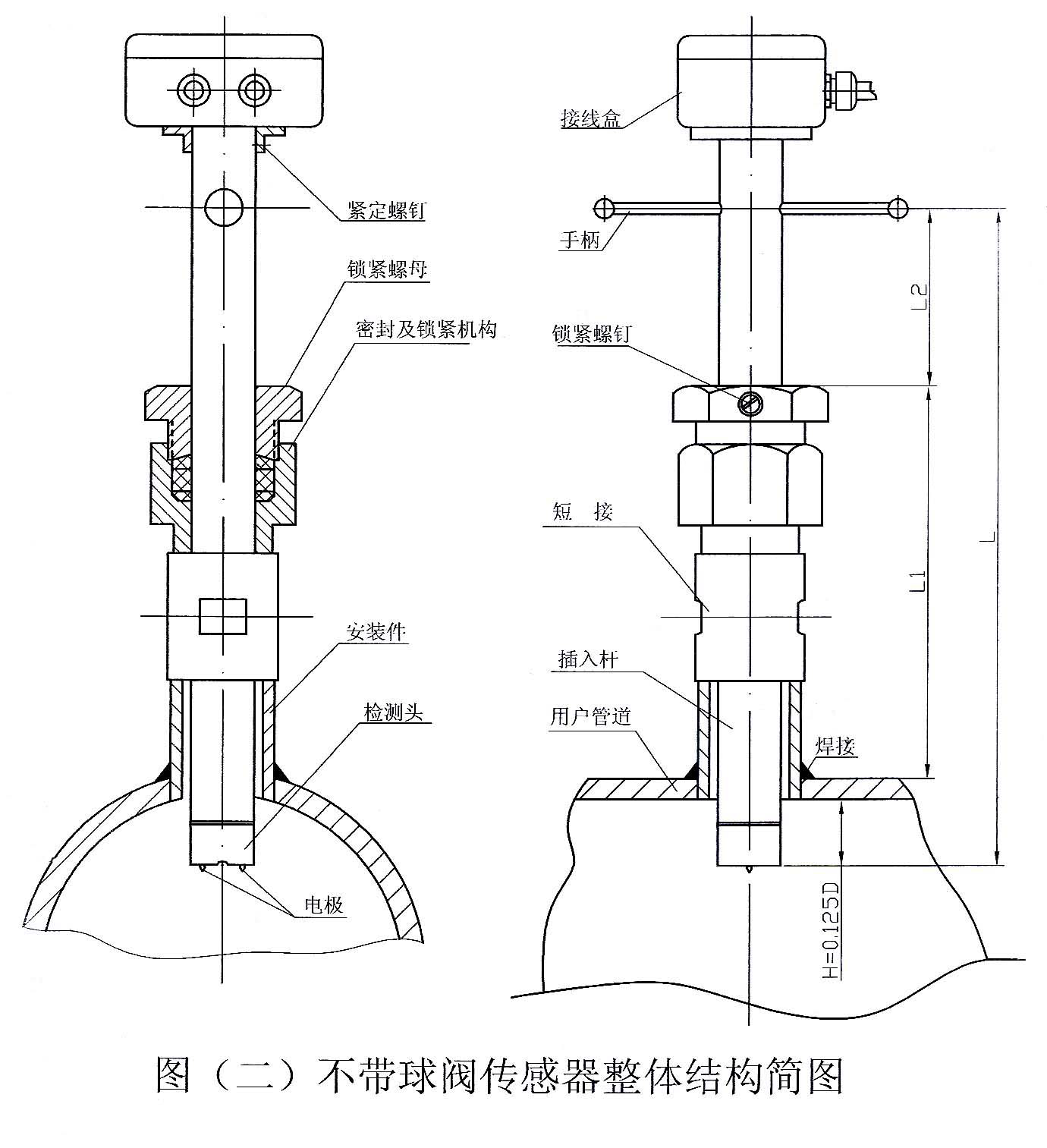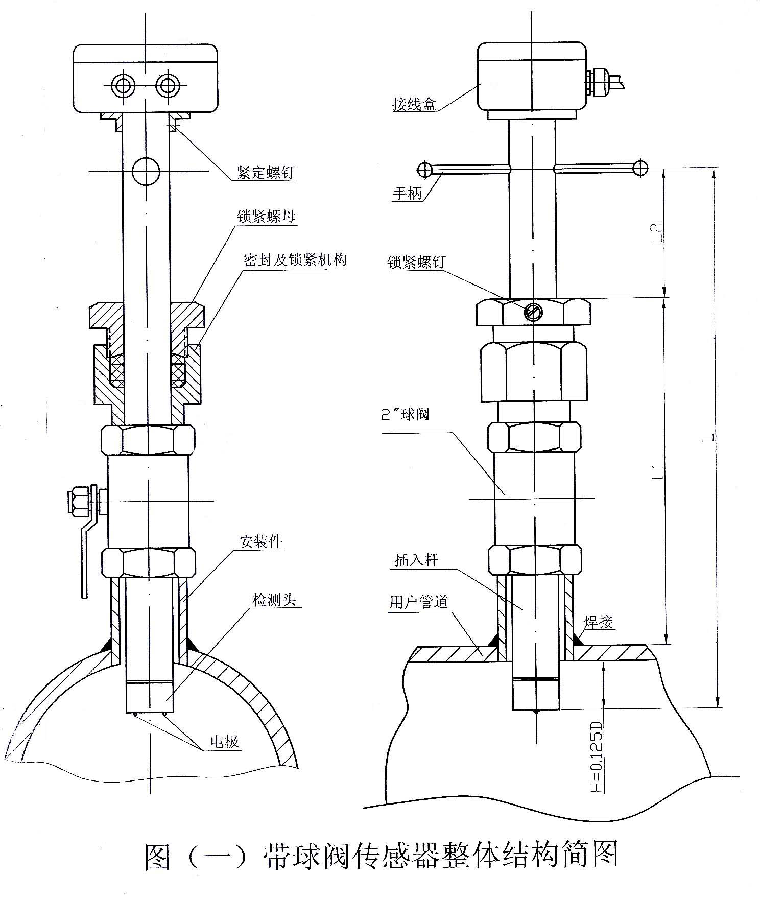 ·阀门或(短节):不锈钢球阀或(短节),用以在不断流情况下取出或安装传感器。