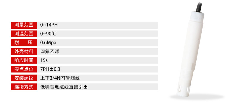 MIK-PH-5013A工业在线聚四氟电极采用聚四氟乙烯材质外壳,抗强酸强碱,耐腐蚀,适合恶劣环境使用。可根据客户需要加装各种温补型号PT100/PT1000/NTC 10K等。广泛应用于医药、颜料、涂料、纸浆造纸、中间体、化肥、淀粉、污水处理、环保、电镀废水处理等行业。