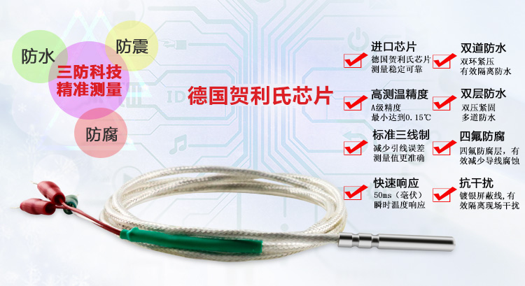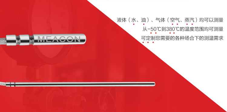引线式热电阻温度传感器全部采用的进口芯体,采用不锈钢外壳,从而达到稳定性好,精度高,抗震性能强等特点。引线式热电阻温度传感器可以测量液体、蒸汽和气体介质以及固体表面温度,广泛应用于大棚、仓库、运输车、冷库、实验室、生产车间等环境的温度检测。