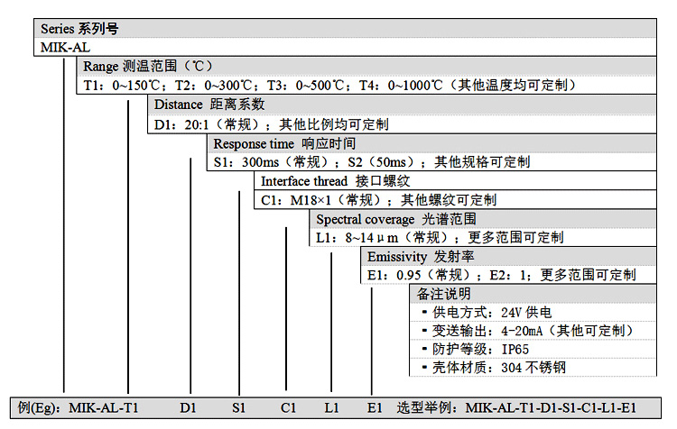 MIK-AL-10是一种一体化集成式红外测温仪。其传感器、光学系统与电子线路共同集成在不锈钢壳体内,具有体积小,方便安装和可抗击电磁干扰等特点。广泛应用于烟草、加热炉、食品加工、橡胶制造、造纸、塑料、包装、染色纺织、电气、复合材料等行业。