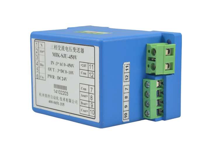 三相电压变送器采用新型电磁隔离,三相三角形接法交流电压输入,用于测量三相三角形接法的交流电压,特别适用于工频50Hz正弦波三相三角形接法交流电压。该款三相电压变送器拥有的性能和价格比,体积小,重量轻,安装简便,测量电压直接输入,广泛用于测量三相三角形接法交流电压的场所。
