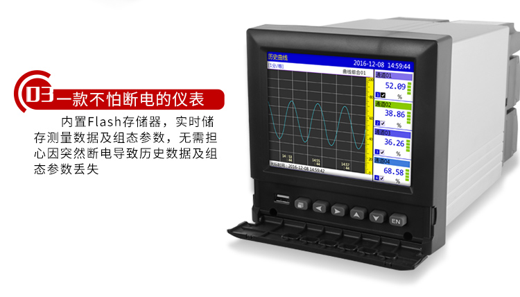 掉电保护:所有数据保存在FLASH存储器中,无需后备电池,确保所有历史数据及组态参数不会因掉电而丢失