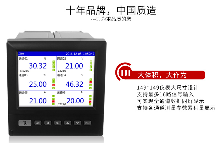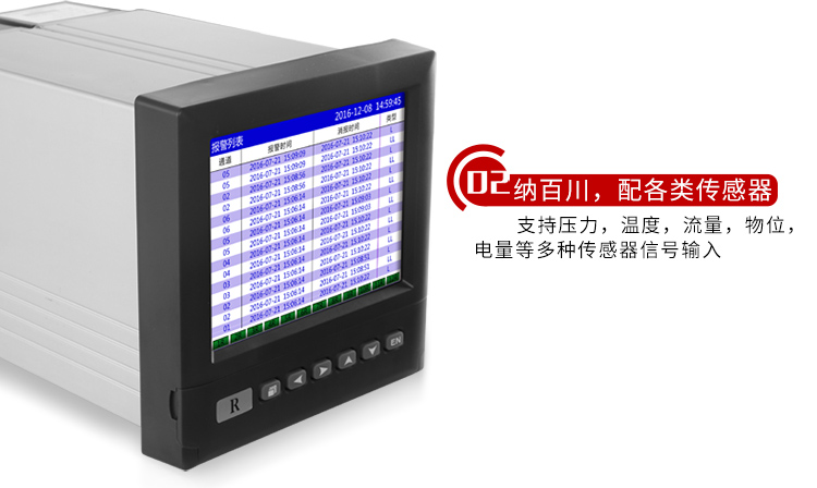 RX4000D系列蓝屏无纸记录仪可以采集、显示与记录现场变送器的信号。可以通过USB接口转存,通过计算机中事先安装好的数据分析软件,监测和评价历史数据和曲线。采用进口的高速、高性能ARM微处理器,5.6英寸LED背光的液晶显示屏和触摸式的按键,主要应用于冶金、石油,化工、建材,造纸,食品、医药、热处理等各种工业现场,在杭州娃哈哈,大庆油田,秦山核电站等都得到了应用。
