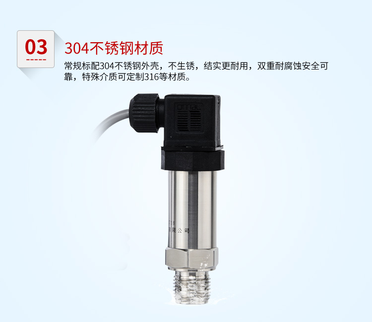 MIK-P300系列液位压力变送器压力敏感核心采用了高性能的硅压阻式压力充油芯体,内部的专用集成电路将传感器毫伏信号转换成标准电压、电流或数字信号,可以直接与计算机接口卡、控制仪表、智能仪表或PLC等方便相连。远距离传输可以采用电流或者485通讯输出方式。具有体积小、重量轻、全不锈钢密封结构。该产品安装方便简洁,具有非常好的抗振和抗冲击性能,广泛应用于过程控制、航空、航天、汽车、医疗设备、HVAC等行业的液体、气体的测量与控制。